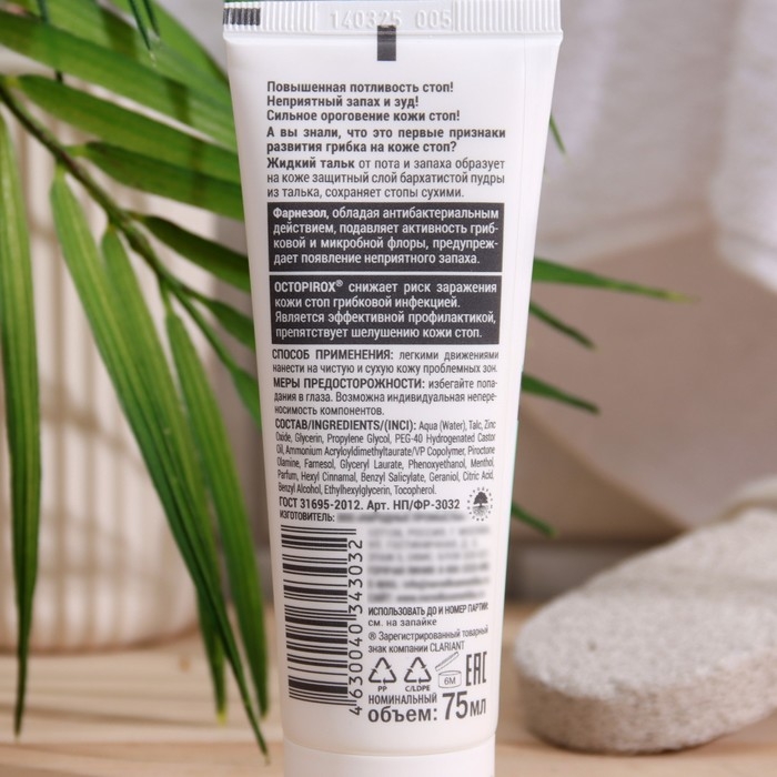 Жидкий тальк "Фельдшер" обладает свойствами антиперспиранта и дезодоранта, что помогает снижать потоотделение и предотвращает образование неприятного запаха. Кроме того, он может содержать успокаивающие и смягчающие ингредиенты, которые помогают снять раздражение и увлажнить кожу стоп.