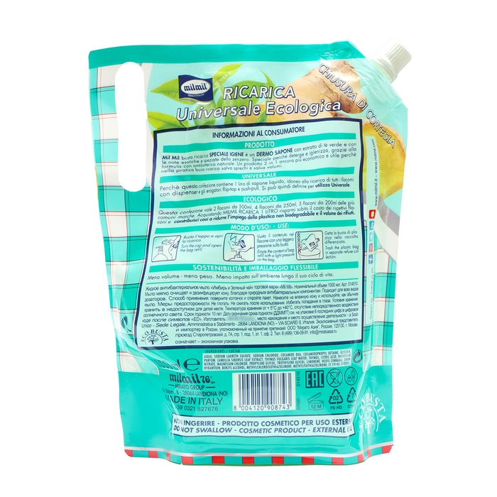 Жидкое антибактериальное мыло "Имбирь и Зеленый чай" MILMIL, 1000 мл