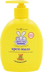 Жидкое крем-мыло УШАСТЫЙ НЯНЬ обладает свойствами геля для душа. Содержит экстракт алоэ вера, обладающий бактерицидными свойствами, и оливковое масло, которое смягчает, питает и увлажняет. Мыло является гипоаллергенным, не сушит и не раздражает кожу.