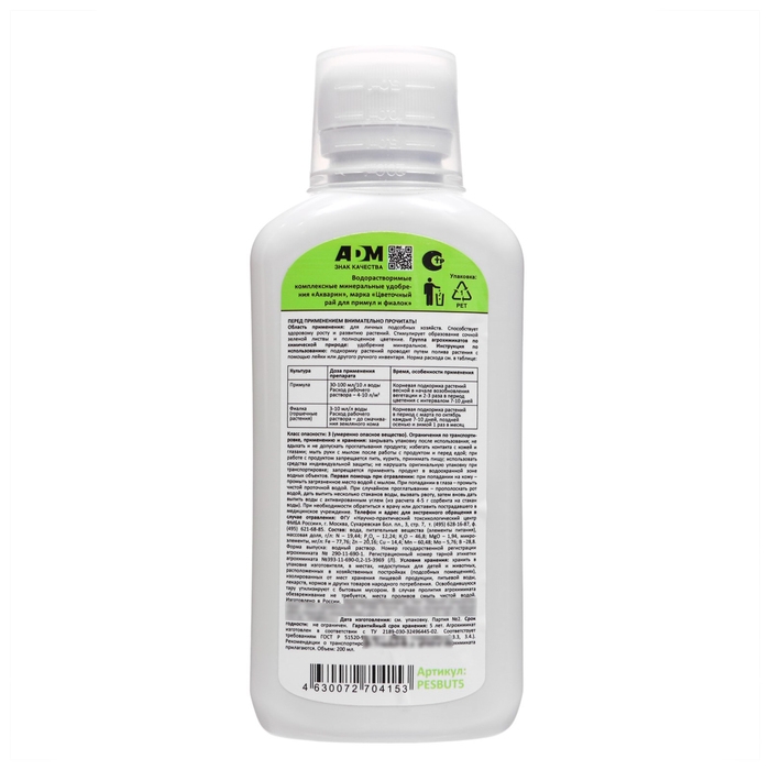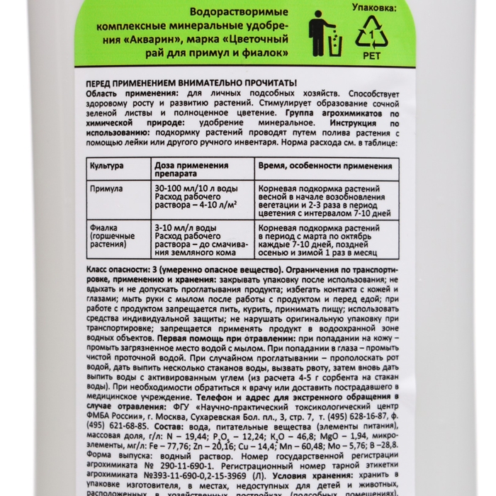 Жидкое минеральное удобрение "Nadzor Garden" для примул и фиалок, 200 мл