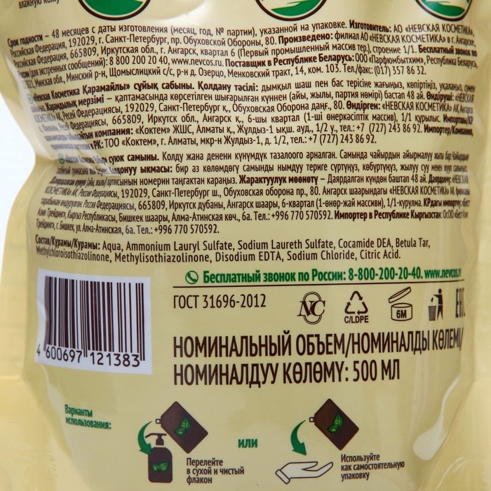 Жидкое мыло Невская косметика «Дегтярное», дой-пак, 500 мл