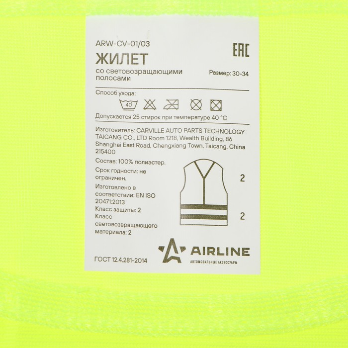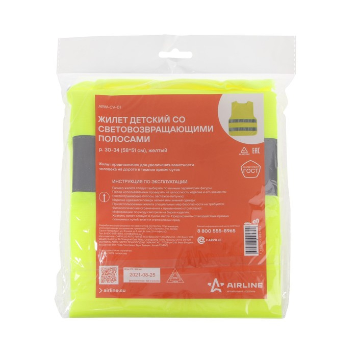 Жилет сигнальный Airline, со светоотражающими полосами, детский, р. 30-34, желтый