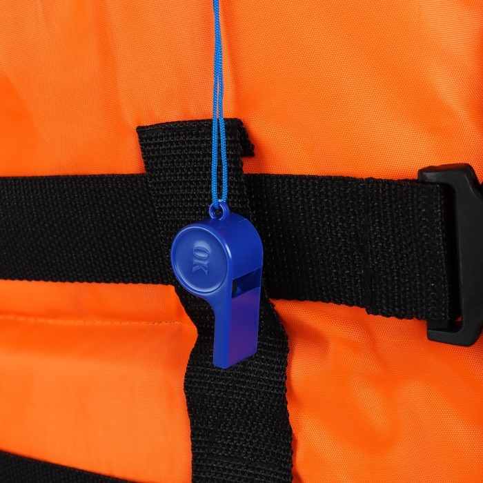 Распашной жилет на фастексах оснащён регулировочными ремнями по груди, талии и плечам. Паховый ремень с регулировкой и фиксацией длины. На уровне груди пришита светоотражающая лента и нагрудный карман на молнии. Жилет укомплектован свистком. Оборудован высоким подголовником, который хорошо держит голову человека на плаву и обладает достаточной гибкостью для складывания при транспортировке.