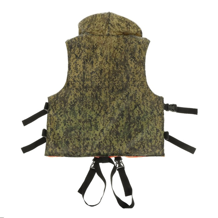 Состав: ткань Oxford 210d, наполнитель — вспененный пенополиэтилен. Благодаря маленькому весу жилет легко транспортировать.
