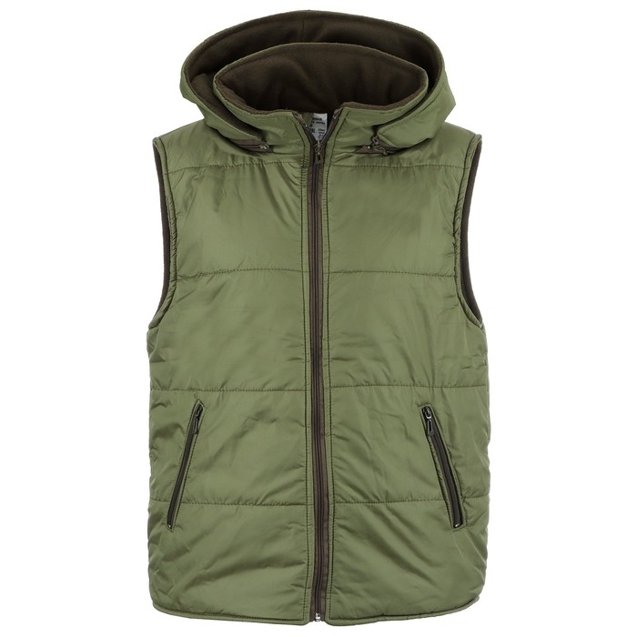 Жилет утепленный на молнии с капюшоном, ткань дюспо, цвет хаки, р 48-50