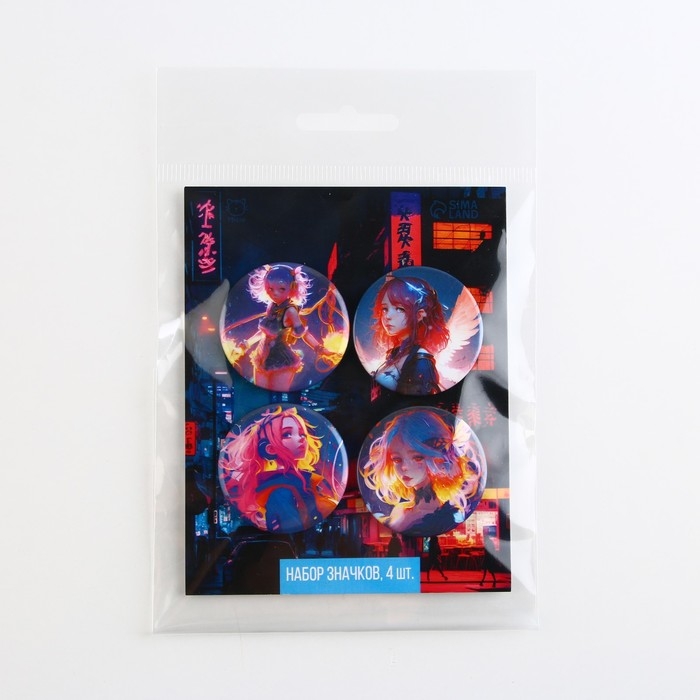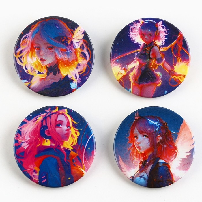 Значок металлический аниме , набор «Неон», d=38 мм, 4 шт.