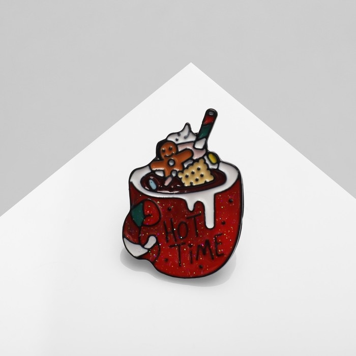 Значок «Пряность» кружка со сладостями, цветной в чёрном металле