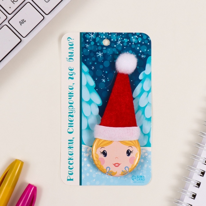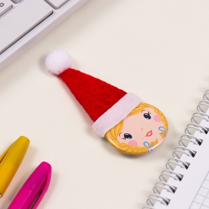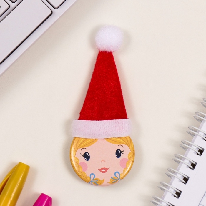Значок закатной с колпаком d=35 мм "Снегурочка" 6,5х11 см