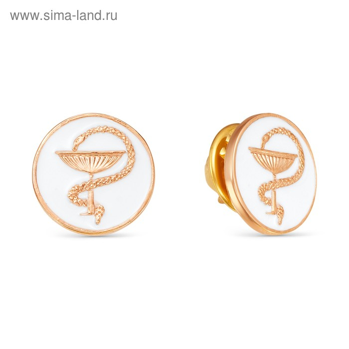 Значок «Змея в геральдике», розовое золочение, цвет белый