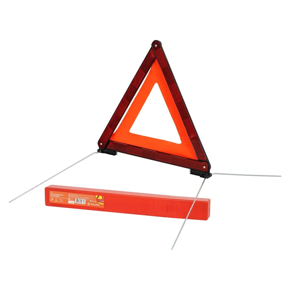 Знак аварийной остановки, представляет собой равносторонний треугольник. Внешняя сторона этого треугольника обклеивается полосой, изготовленной из светоотражающего материала. Это необходимо для того, чтобы он был заметен другим водителям с дальнего расстояния. Внутренняя сторона обклеивается флуоресцирующей яркой полосой. Соответствует ТР ТС 018/2011
