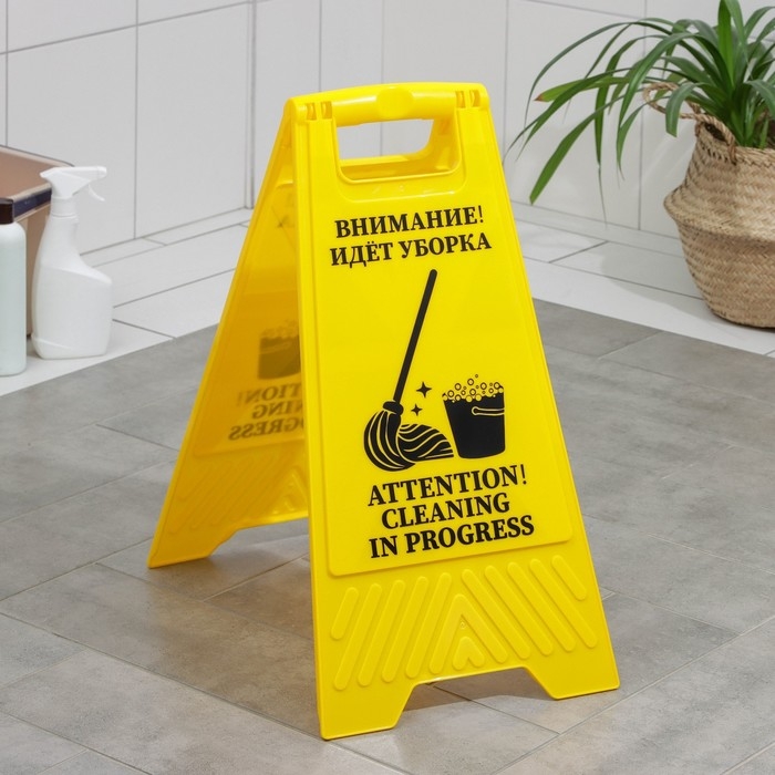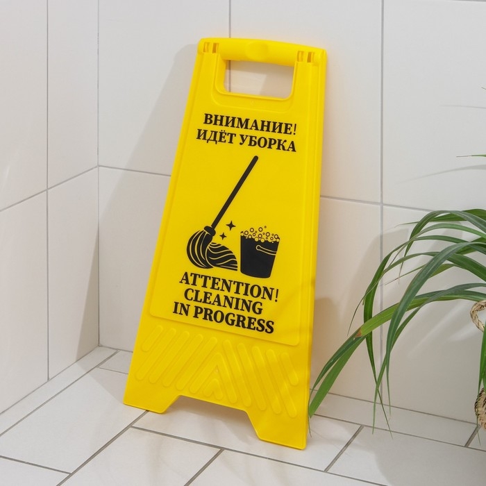 Знак «Внимание! Идёт уборка», 61×30 см, пластик, цвет жёлтый