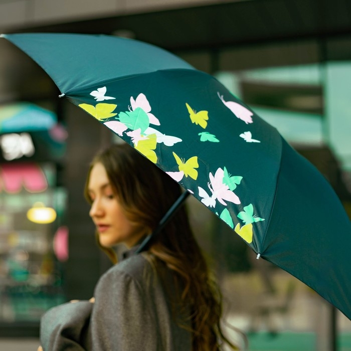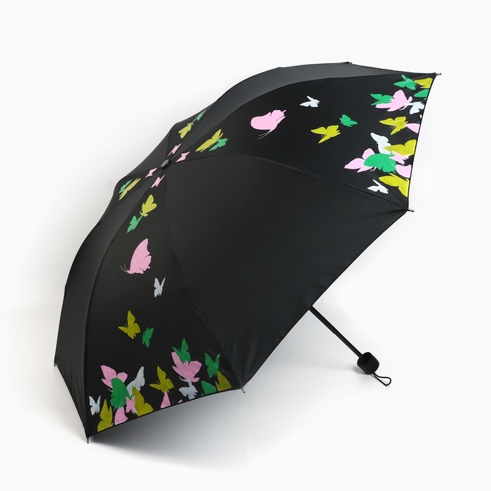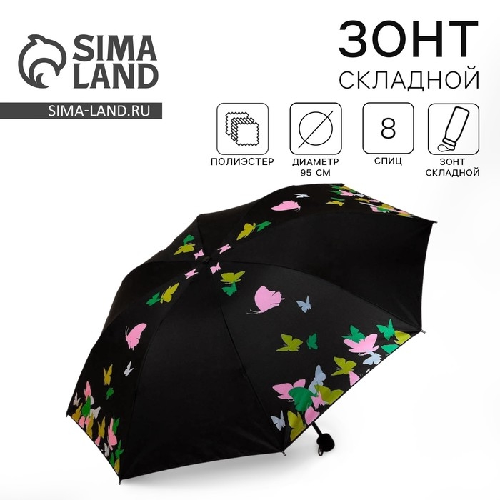 Зонт женский механический «Яркие бабочки», 8 спиц, d=95, цвет чёрный