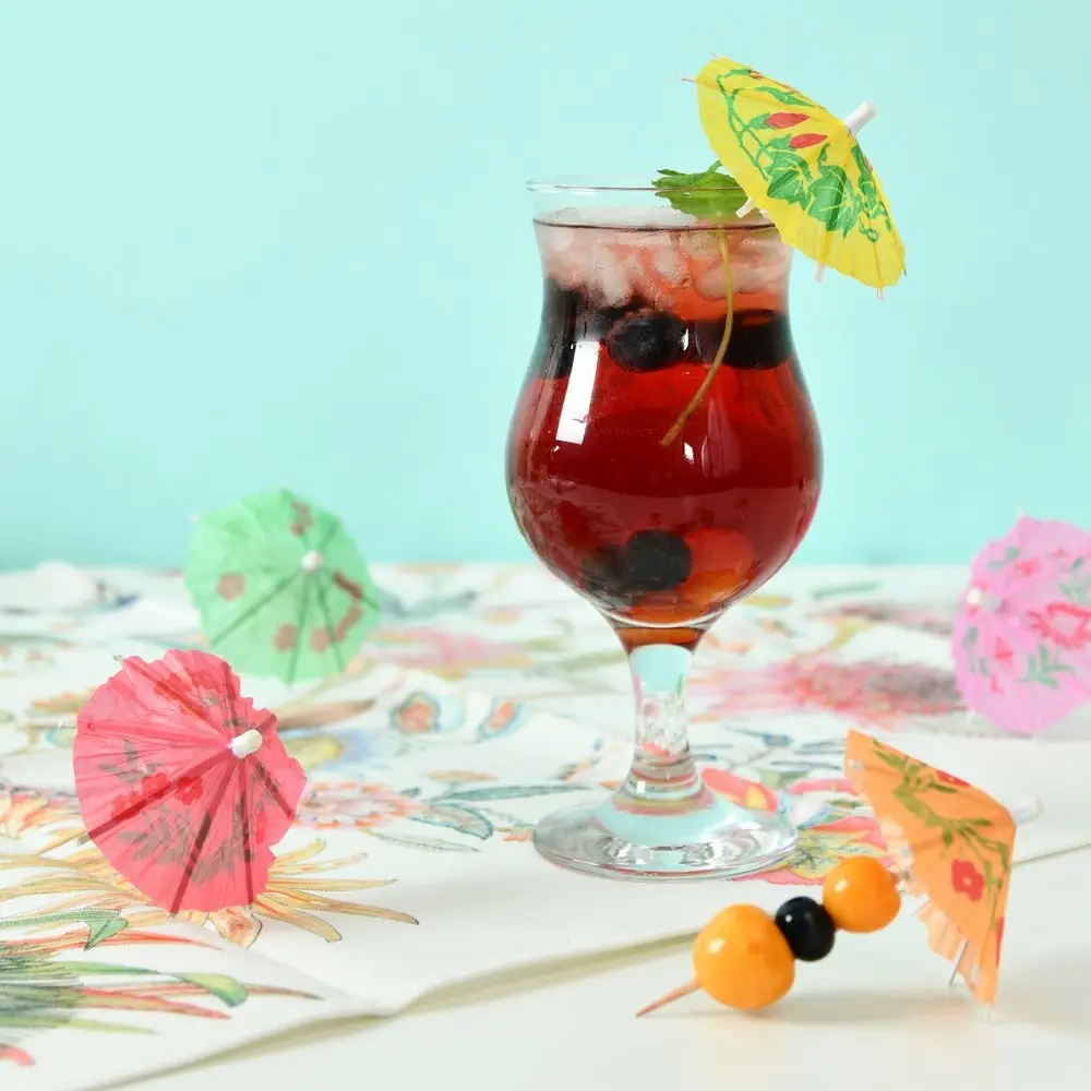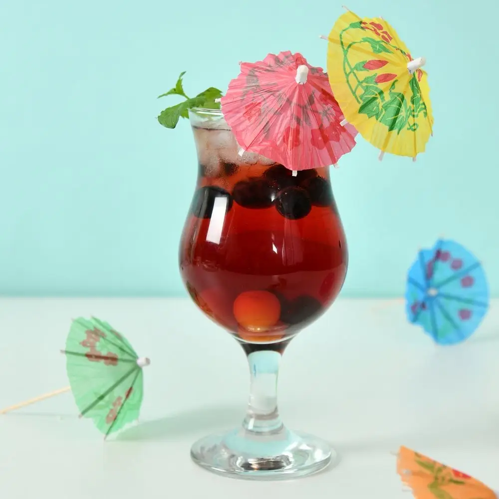 Зонтики используются для украшения коктейлей, напитков, салатов и других блюд. Идеально подходят для фуршетов, вечеринок и праздников. Выбирайте любимые ингредиенты для приготовления коктейлей, а зонтики в оригинальном дизайне поднимут настроение вам и вашим гостям. Зонтики можно использовать в качестве шпажек при сервировке стола многослойными мини-бутербродами (канапе) из овощей, фруктов, ягод, сыров и мясных продуктов. Зонтики продаются в наборе по 24 штуки, это оптимальный вариант, если вы планируете позвать большое количество гостей. Зонтик открывается и фиксируется с помощью пластмассового колечка. Предназначены для одноразового использования. Изготовлены из дерева (бамбук), декор из бумаги. Общая длина зонтика 10 см.