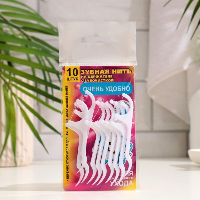 Зубочистка пластиковая с нитью для межзубного пространства (2 в 1) имеет ряд преимуществ - зубочистка поможет избавиться от остатков пищи и зубного налета - зубная нить прекрасно справится с остатками пищи, зубного камня и налета в межзубном пространстве. В наборе 10 шт.