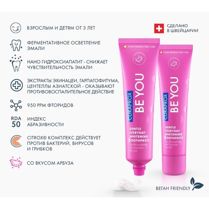 Зубная паста Curaprox BE YOU "Любитель конфет", розовая, 60 мл
