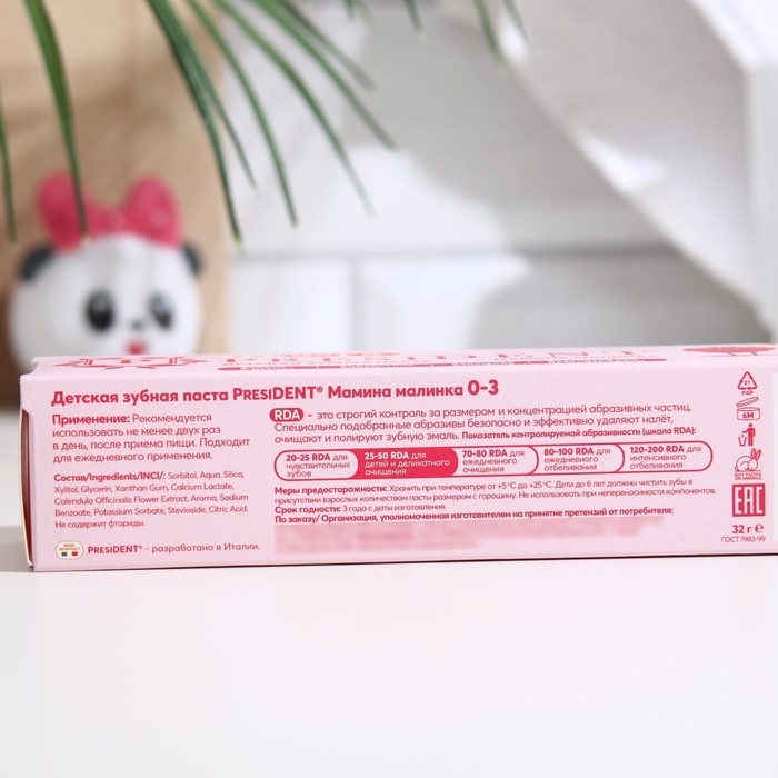 Основные характеристики детской зубной пасты President "Малина" могут включать:
