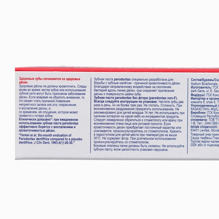 Зубная паста parodontax без фтора не содержит фтора, однако также эффективно устраняет бактерии, вызывающие воспаление и кровоточивость десен, а также поддерживает здоровье зубов и десен и обеспечивает свежесть дыхания.