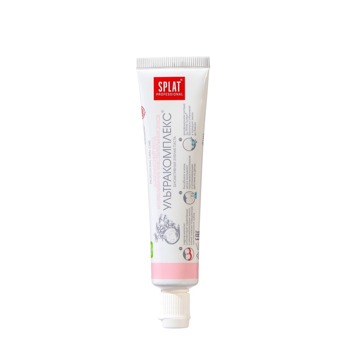 Паста Splat Professional Compact «Ультракомплекс» бережно заботится о белизне чувствительных зубов и здоровье дёсен, а также прекрасно освежает дыхание.