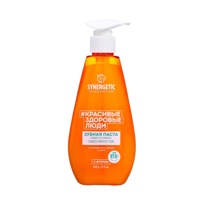 Зубная паста SYNERGETIC защита от кариеса CARIES PROTECTION, 240 г с экстрактом имбиря и нима с фтором - это отличный выбор для тех, кто хочет заботиться о своих зубах и предотвратить развитие кариеса.