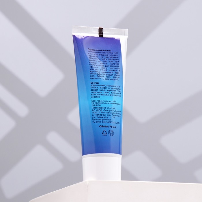 Состав: экстракты прополиса, шалфея и календулы, сорбат калия, карбопол-940, бензоат серебра, вода дистиллированная.