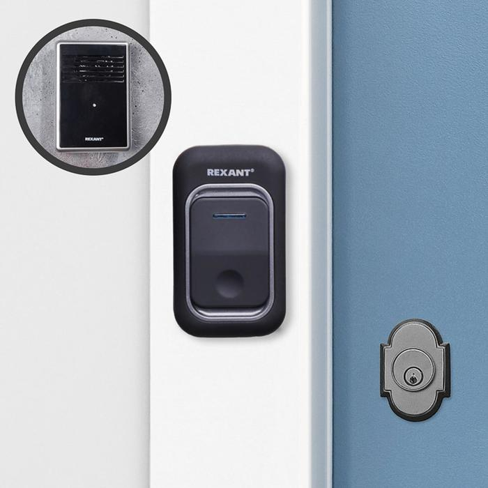 Звонок REXANT RX-30, беспроводной, 25 мелодий, 150 м, от батареек, чёрный